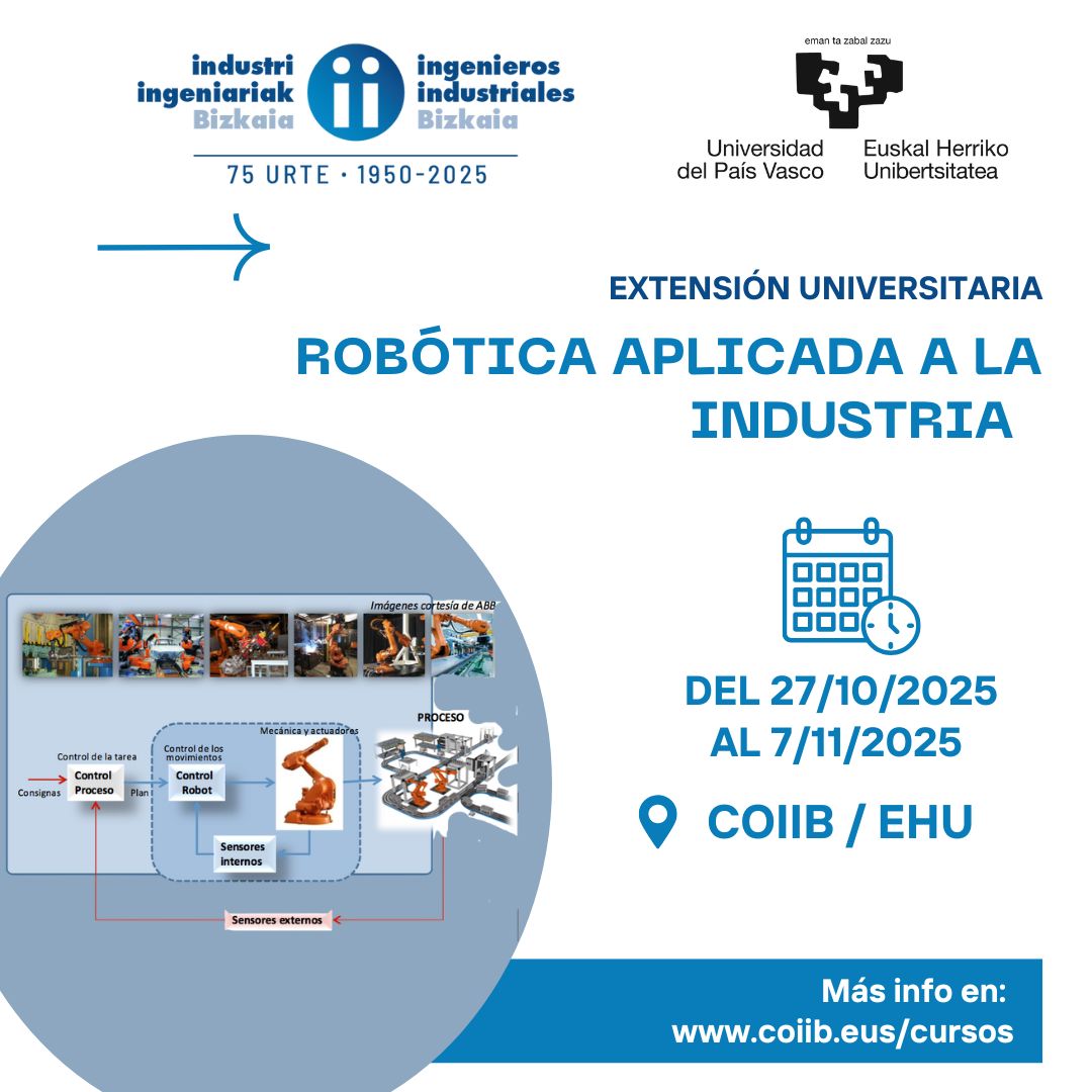 Este octubre da comienzo el III Curso Formativo de Extensión Universitaria del COIIB y la Escuela de Ingeniería de Bilbao (EIB / EHU): "Robótica aplicada a la Industria (1ª Edición)".